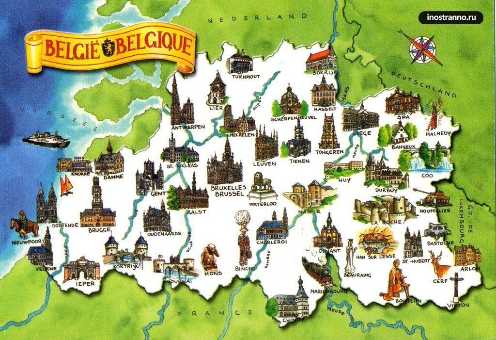 De majestueuze Sint-Baafskathedraal is met zijn hooggotisch koor en romaanse crypte een toonbeeld van de beste religieuze architectuur in België en is de meest opmerkelijke toeristische attractie van Gent. De Basiliek van het Heilig Bloed is niet alleen indrukwekkend vanwege de mengeling van romaanse en laatgotische architectuur, maar ook vanwege de heilige relikwie die er wordt bewaard. Midden in het centrum van Antwerpen ligt de prachtige Grote Markt, waar enkele van de mooiste voorbeelden van de gildehuisarchitectuur van België te vinden zijn, met hun typische torendakvorm. De Maasvallei, ten zuiden van Brussel, is een van de beste plaatsen om een idee te krijgen van het landelijke hart van België, zoals vermeld op de kaart met bezienswaardigheden in België. De oude stad van Mons is een genot om te verkennen.